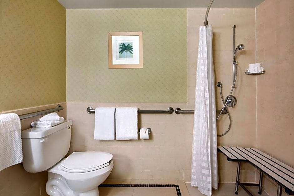 This mobility accessible standard suite features one king-sized bed, and an accessible tub. Any corresponding photo may not reflect the specific accessible room type or room feature.
